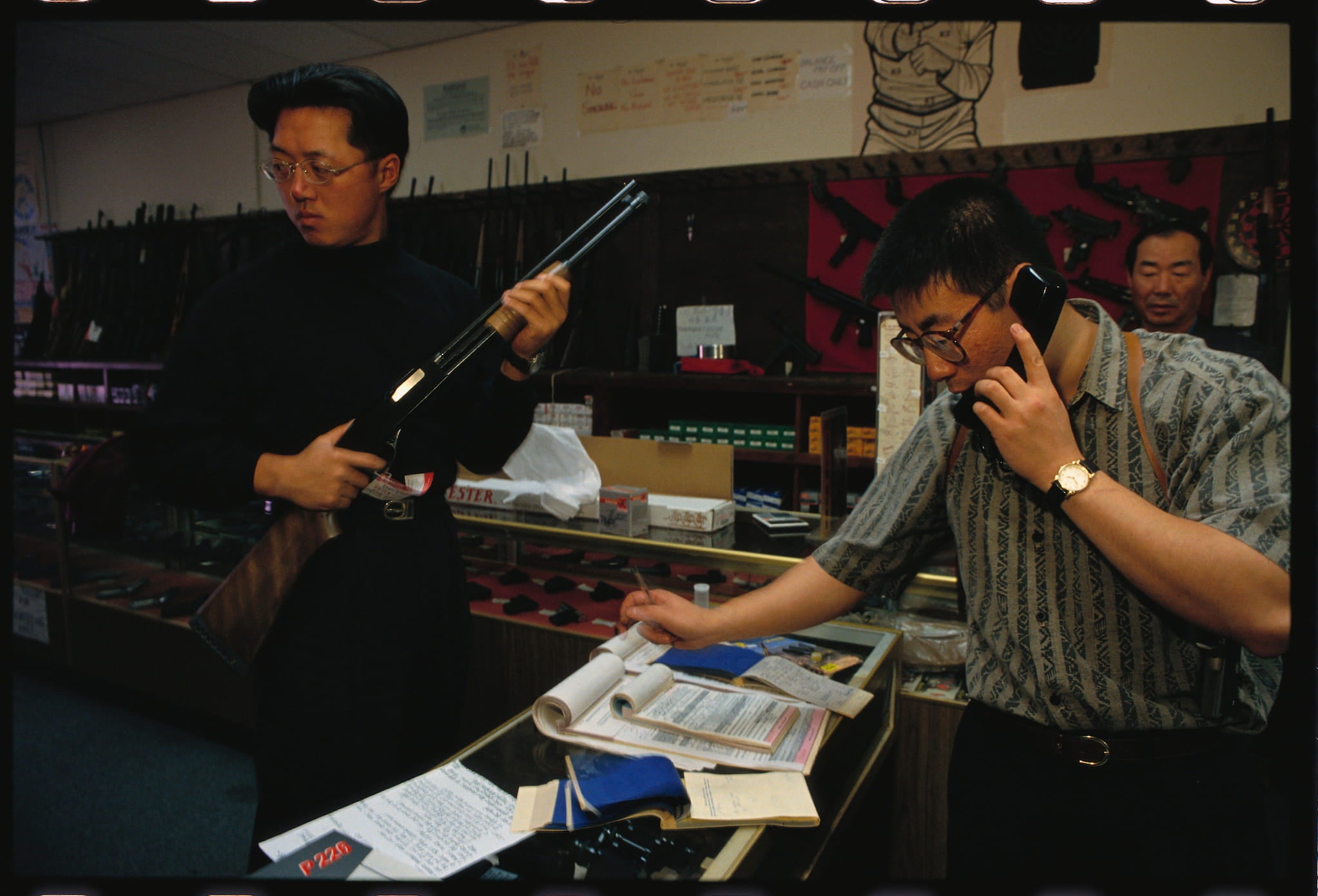 Jong Min Kang, the thirty-three-year-old president of the Korean American Business Association, had started this group in December 1991 because of increased attacks on Korean American businesses. During the 1992 LA Uprising, its volunteers guarded stores and escorted store owners to their cars. The Korean Young Adult Teams stand guard outside vulnerable storefronts and restaurants, using walkie-talkies to communicate with each other.