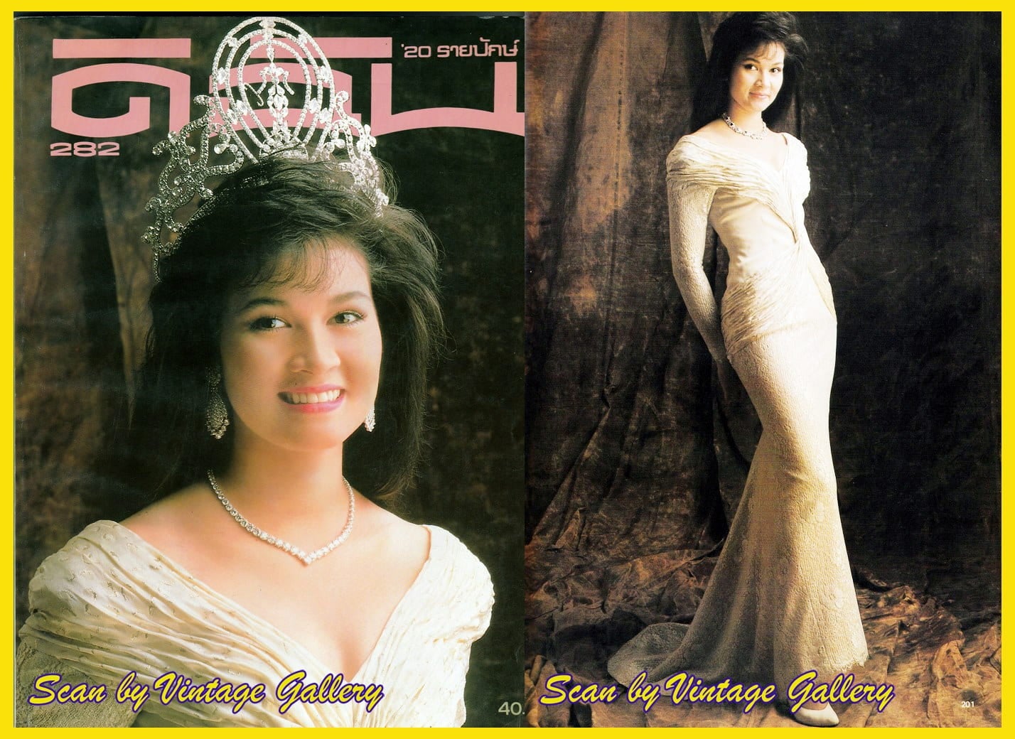 Image 18.01.01 — Bui Porntip on the cover of the November 1988 issue of Thai fashion magazine, Dichan. During her reign as Miss Universe, she was featured on many Thai magazine covers and on several television shows. She remains extremely popular with Thais today.