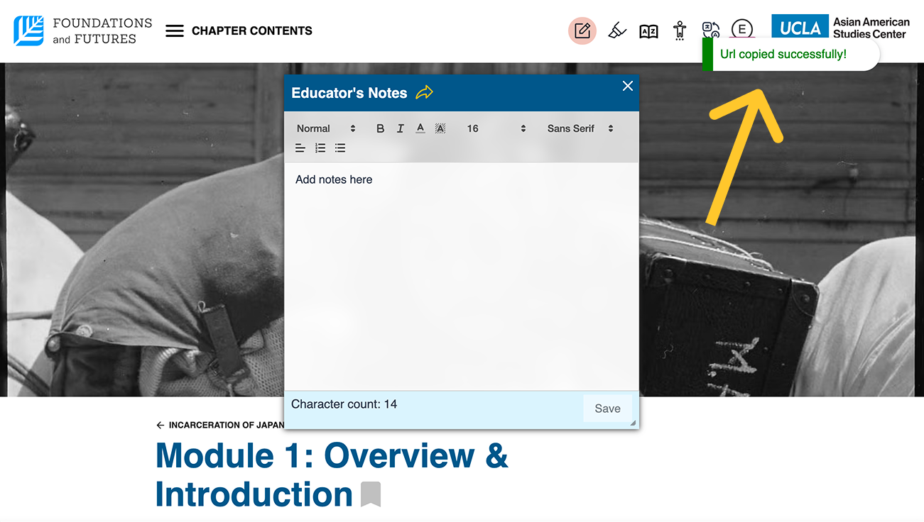 The Notes feature allows you to take notes on modules within a chapter, with also the option to share the notes among others.